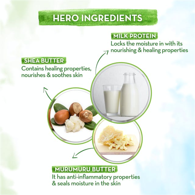 Mamaearth's Milky Soft Face Cream. With the goodness of Almond Oil and Murumuru Butter, I moisturize baby's delicate skin and protect it from dryness by forming a skin barrier. Milk protein in me locks in the moisture and soothes baby's delicate skin.