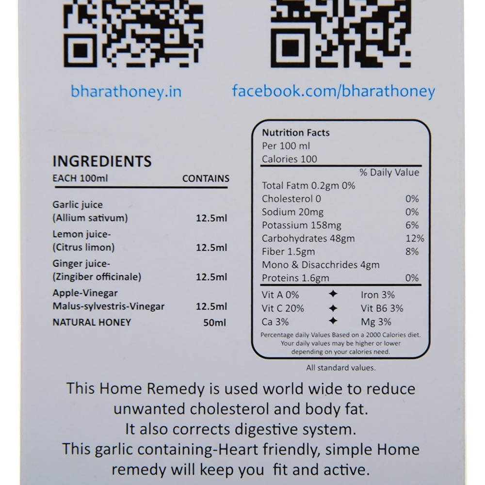 Ingredients: juices of garlic, ginger, lemon, apple cider vinegar and honey
