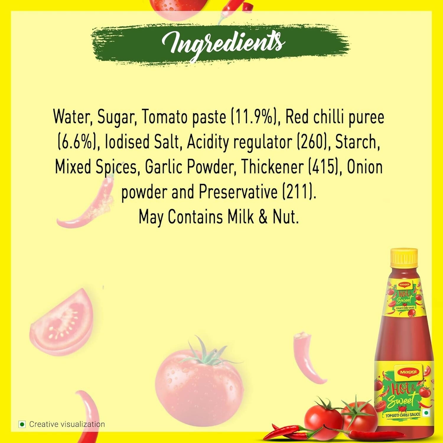 - PERFECT SNACK PARTNER: Add a tangy & spicy taste to your favorite snacks with this Maggi Hot & Sweet Tomato Chilli sauce