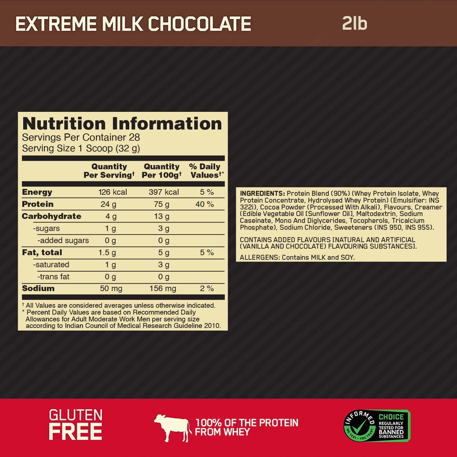 Optimum Nutrition Gold Standard 100% Whey Protein Powder (Extreme Milk Chocolate)-907 gm