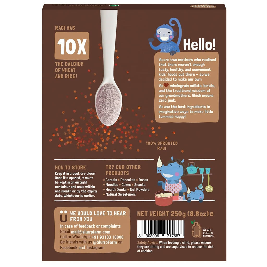 Slurrp Farm Sprouted Ragi is a gluten-free grain that is great for growing bones and cooks in just 2 minutes. Ragi has 10 times the calcium of wheat and rice and 3 times the calcium of milk. This ragi is sprouted for enhanced nutrition.Ingredients: