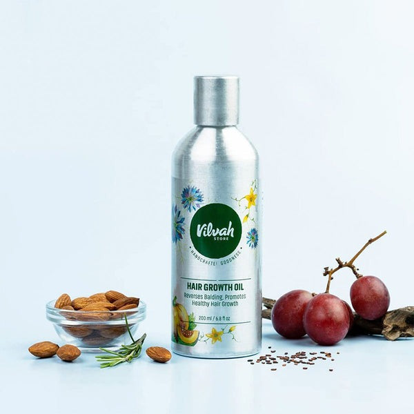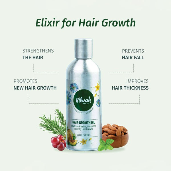• kalonji oil, castor oil and grapeseed oil in the right proportion which helps in the regeneration of new hair follicles and reduces hair fall.