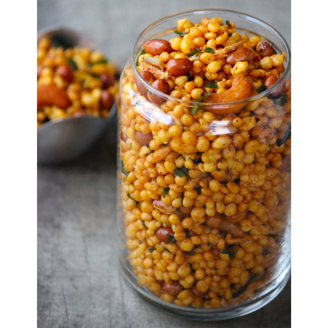 About the Product:- Kara bondi is the savoury snacks prepared with gram flour that mixed with red chili masala, and curry leaves to spice up the savoury snack and nuts like cashews and peanuts to give you crunchy texture mixed with nutty flavour. Make it a wholesome treat with Karam boondi from Andhra Pradesh.