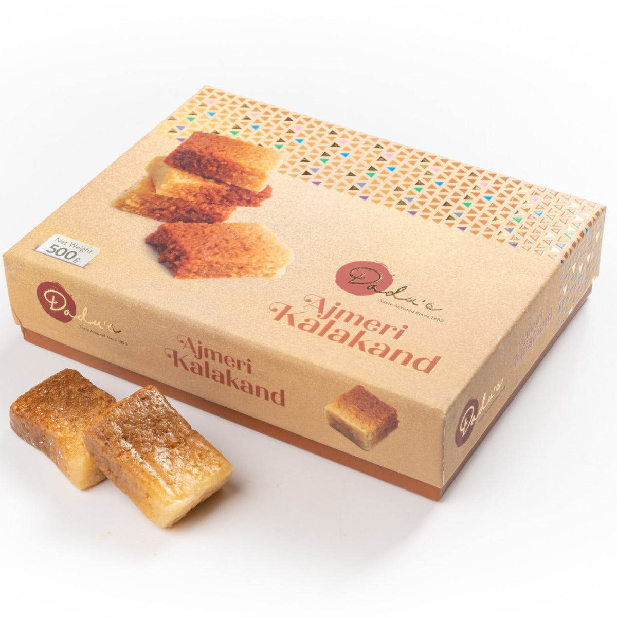 Dadu’s Ajmeeri Kalakhand is a milk-based sweet item. It is tender and delicious in taste. The caramelized milk with ghee oozing out of it makes Kalakhand a loved Indian dessert. The sweets are made with