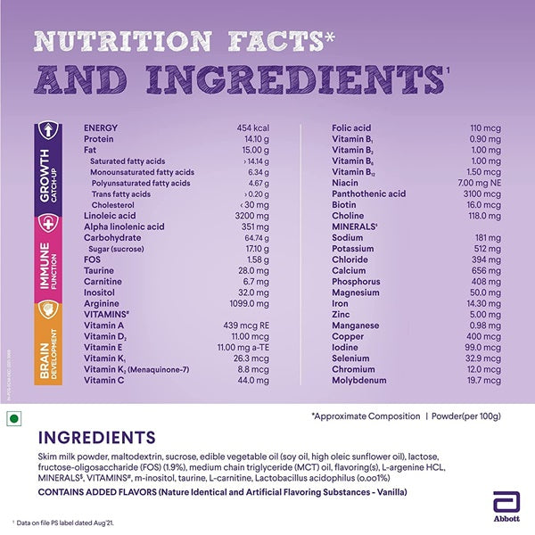 PediaSure Health and Nutrition Drink Powder tastes delicious with milk. The drink comes in vanilla flavor. This super tasty drink boosts the health and development of children. Boost Overall Development, For Children Between 2-6 years of age