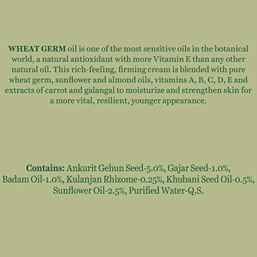 This rich-feeling, firming cream is blended with wheat germ, sunflower and almond oils, vitamins A, B, C, D, E and extracts of carrot and galangal to moisturize and strengthen skin for a more vital, resilient, younger appearance.
