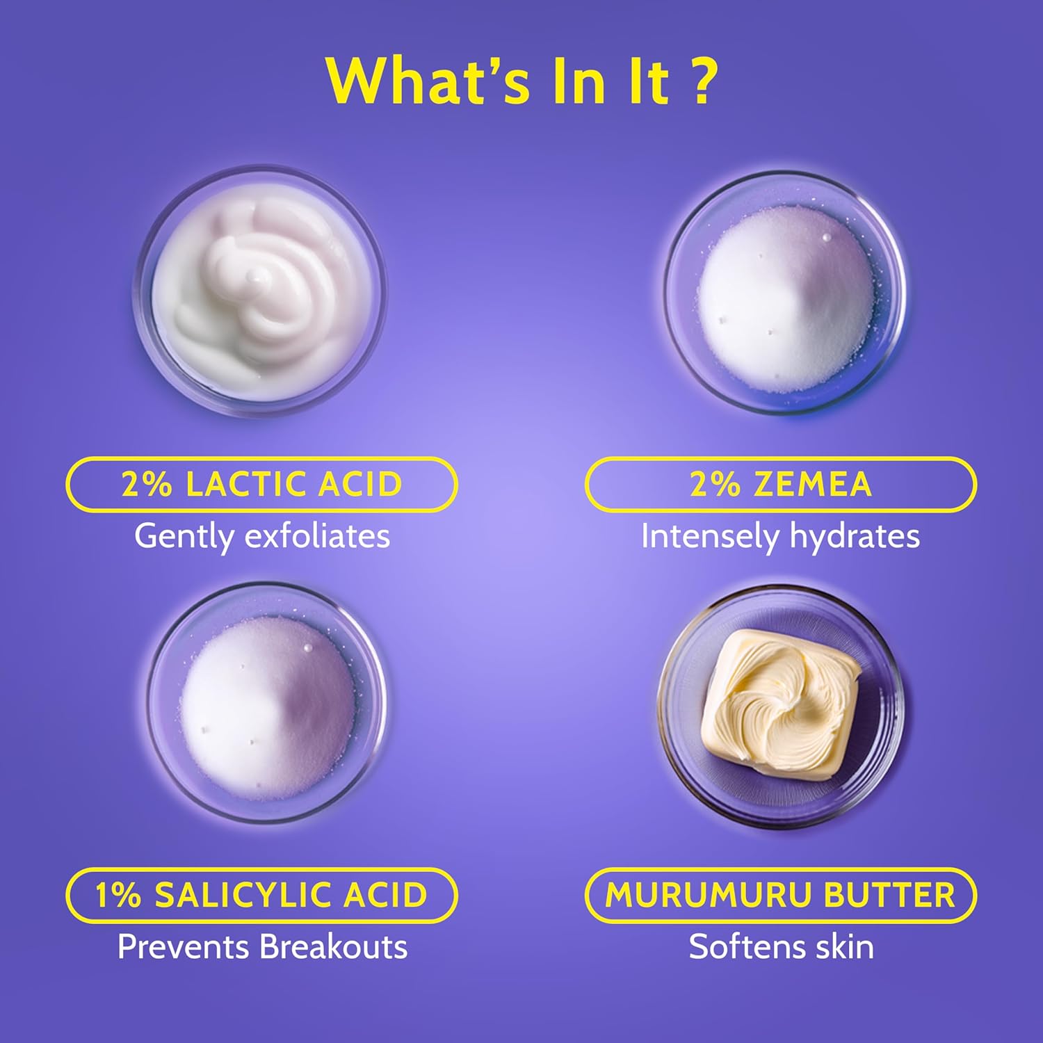 • NOURISHES THE SKIN: Our Exfoliating Body Wash is enriched with Lactic Acid that helps shed dead skin cells, making the skin unbelievably soft and supple.