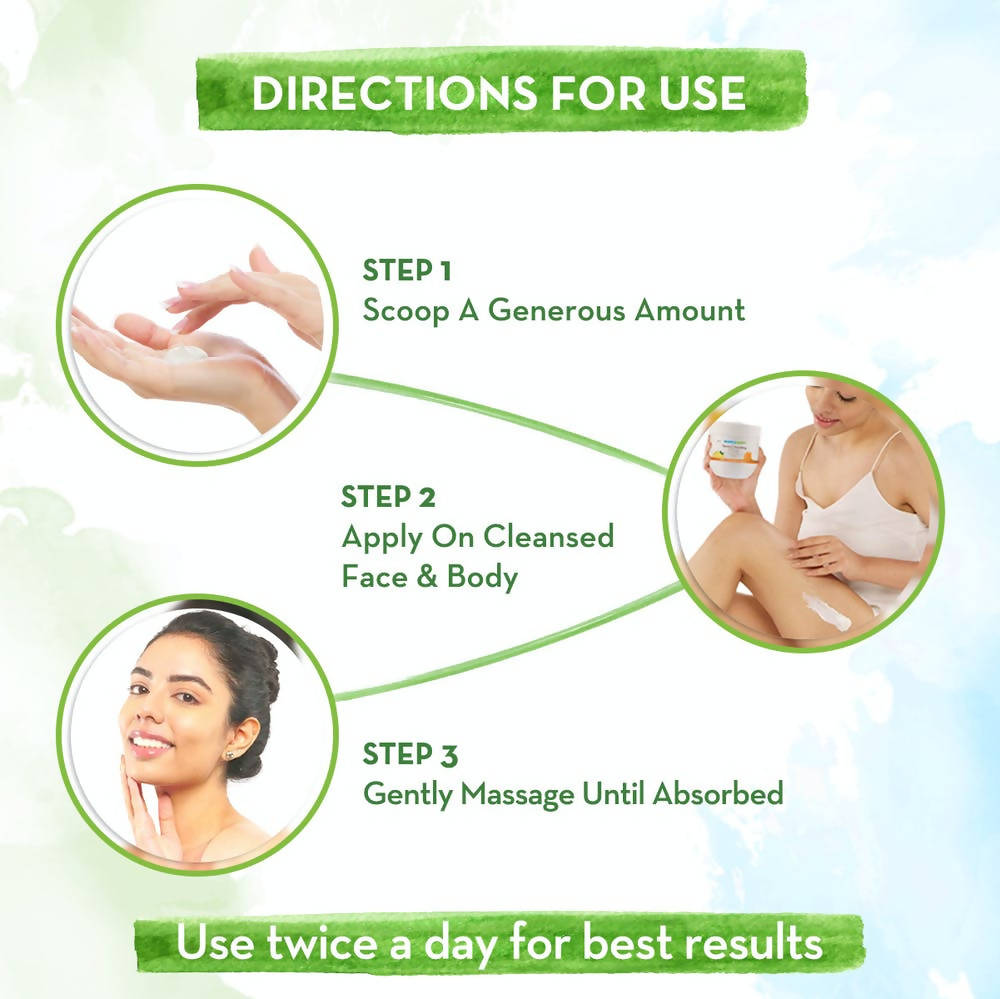 • Step 2: Gently massage in circular motions on your cleansed face & body until completely absorbed.