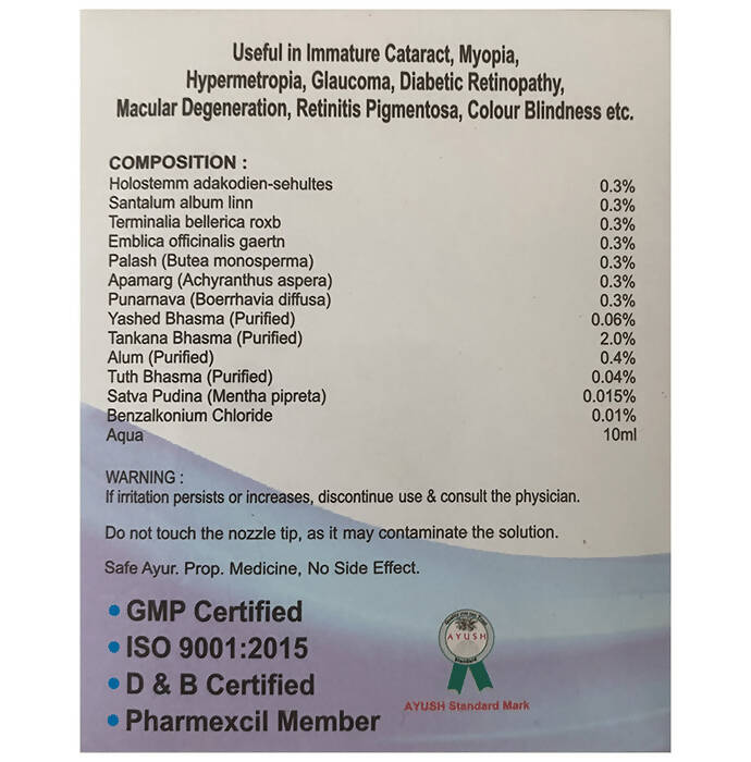 - Palash, Apamarg, Punarnava, Yashad Bhasma, Tankana Bhasma, Tuth Bhasma, Alum, Satva, Podina, Jeevanti, Chandan, Amla, Baheda, Satva Podina