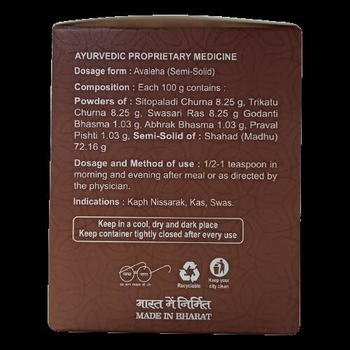• Sitopaladi churna, Trikatu churna, Swasari Ras, Godanti Bhasma, Abhrak Bhasma, Praval Pishti, Shahad (Honey)
