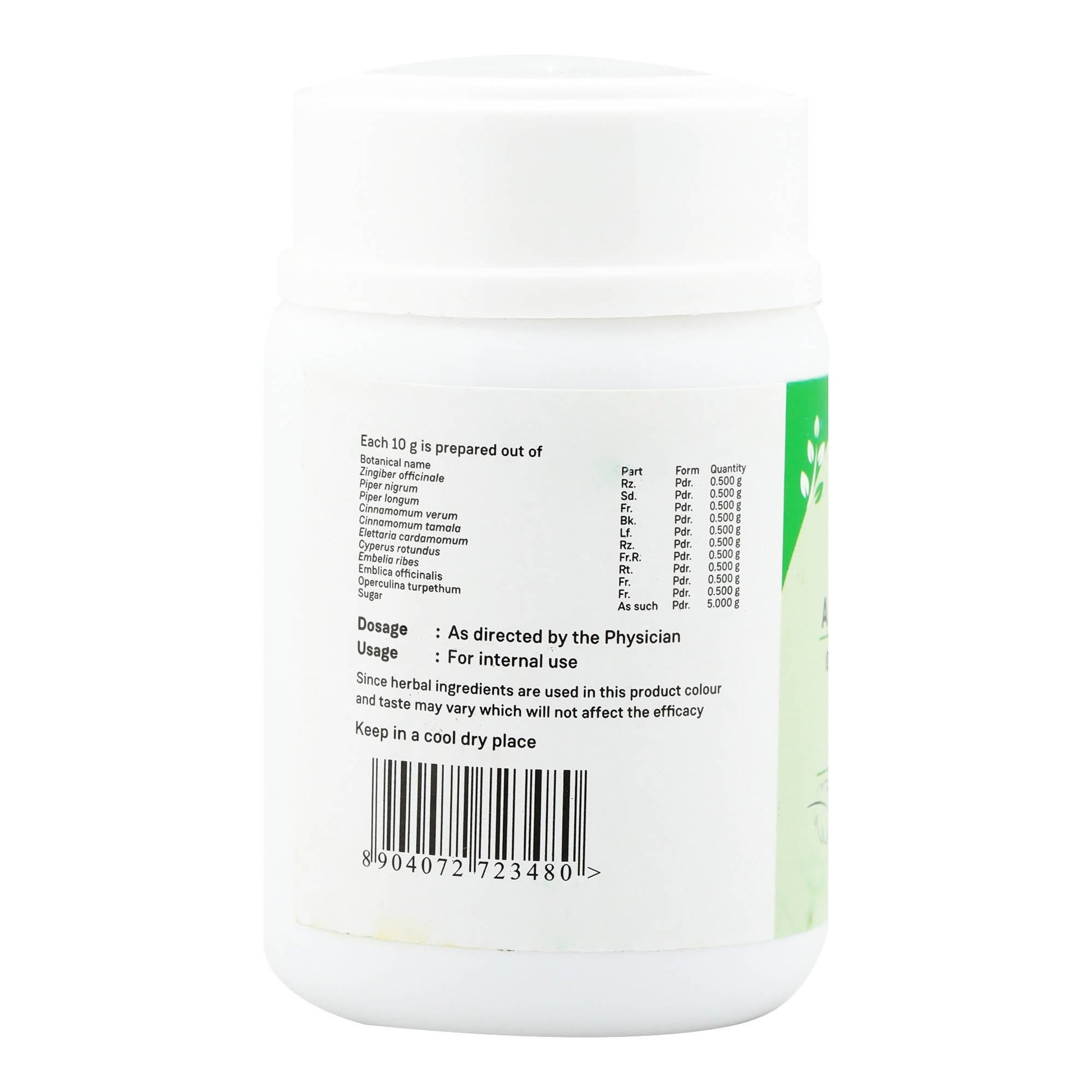 Combination of Shunti, Pippali, Maricha, Ela, Twak, Patra, Musta, Amalaki, Vidanga, Sharkara and TrivrtDirections of use