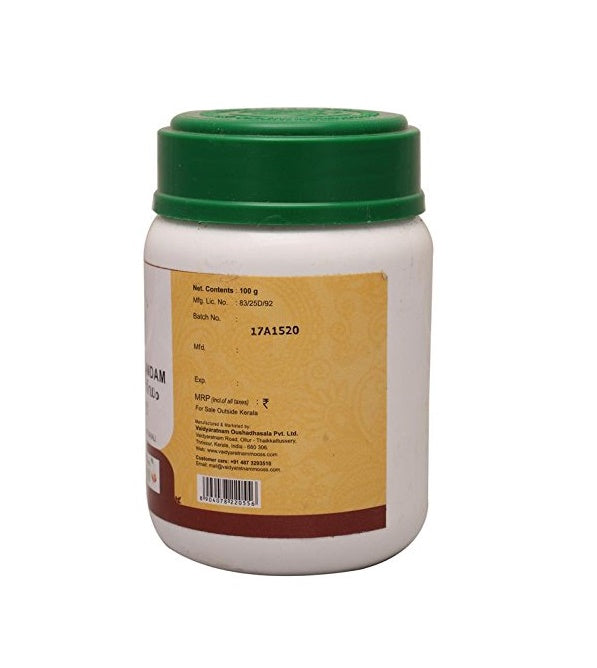 Vaidyaratnam Haridrakhandam is an all-natural decoction. The supplement is made with turmeric (haridra) and is thus known as Haridrakhandam.