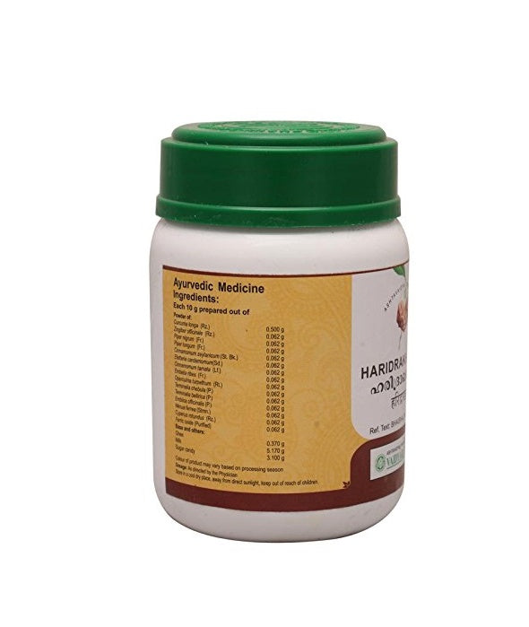Vaidyaratnam Haridrakhandam is an herbal decoction. This all-natural supplement is traditionally used for the skin. This herbal supplement is also spelled as Haridra Khanda.