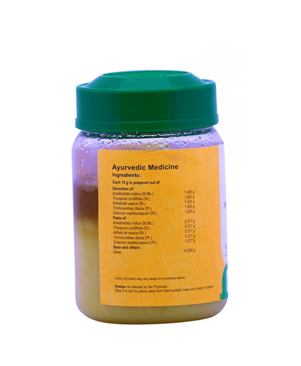 Vaidyaratnam Panchathikthakam Ghrutham is a time-tested Ayurvedic compound known for its numerous advantages. This therapeutic ghee, made with five bitter herbs and pure cow's ghee, provides internal and outward for a variety of ailments.