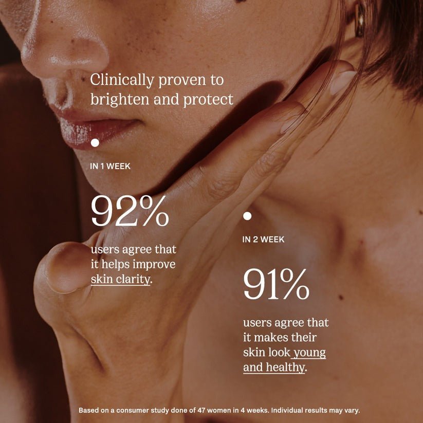 - Pat gently over your face and neck until fully absorbed into the skin.