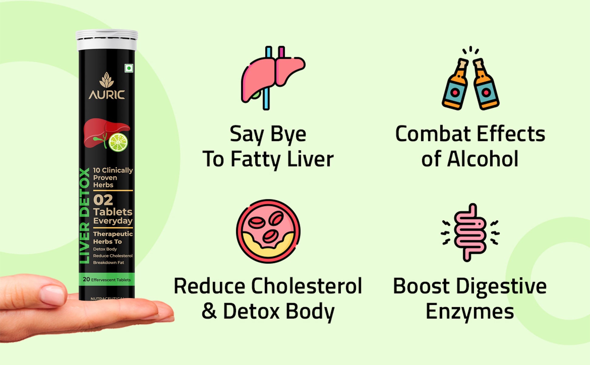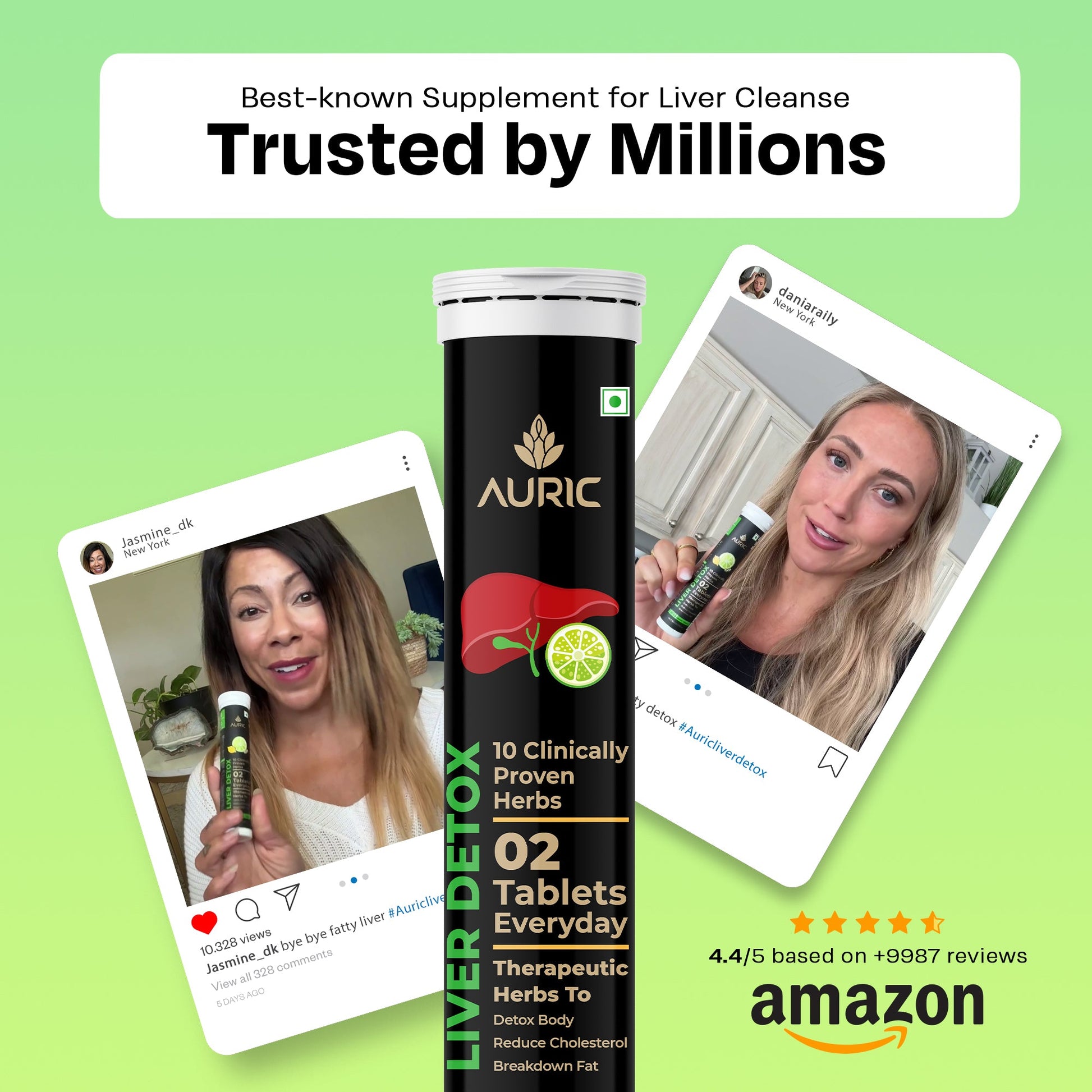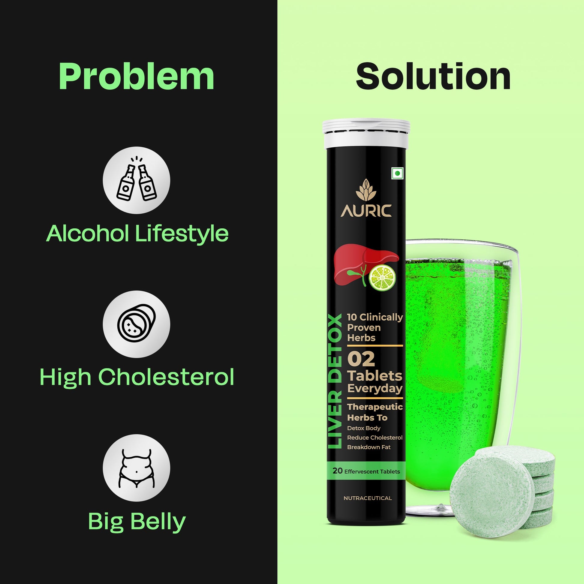 Auric Liver Detox Effervescent Tablets | Fizzy Water with 10 Ayurvedic Herbs | Clinically Researched Therapeutic Ingredients | Drop, Dissolve, Fizz, Drink