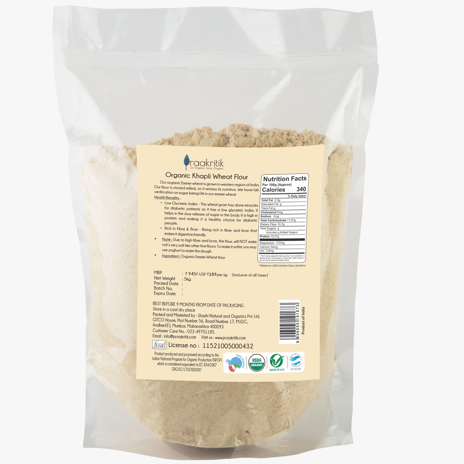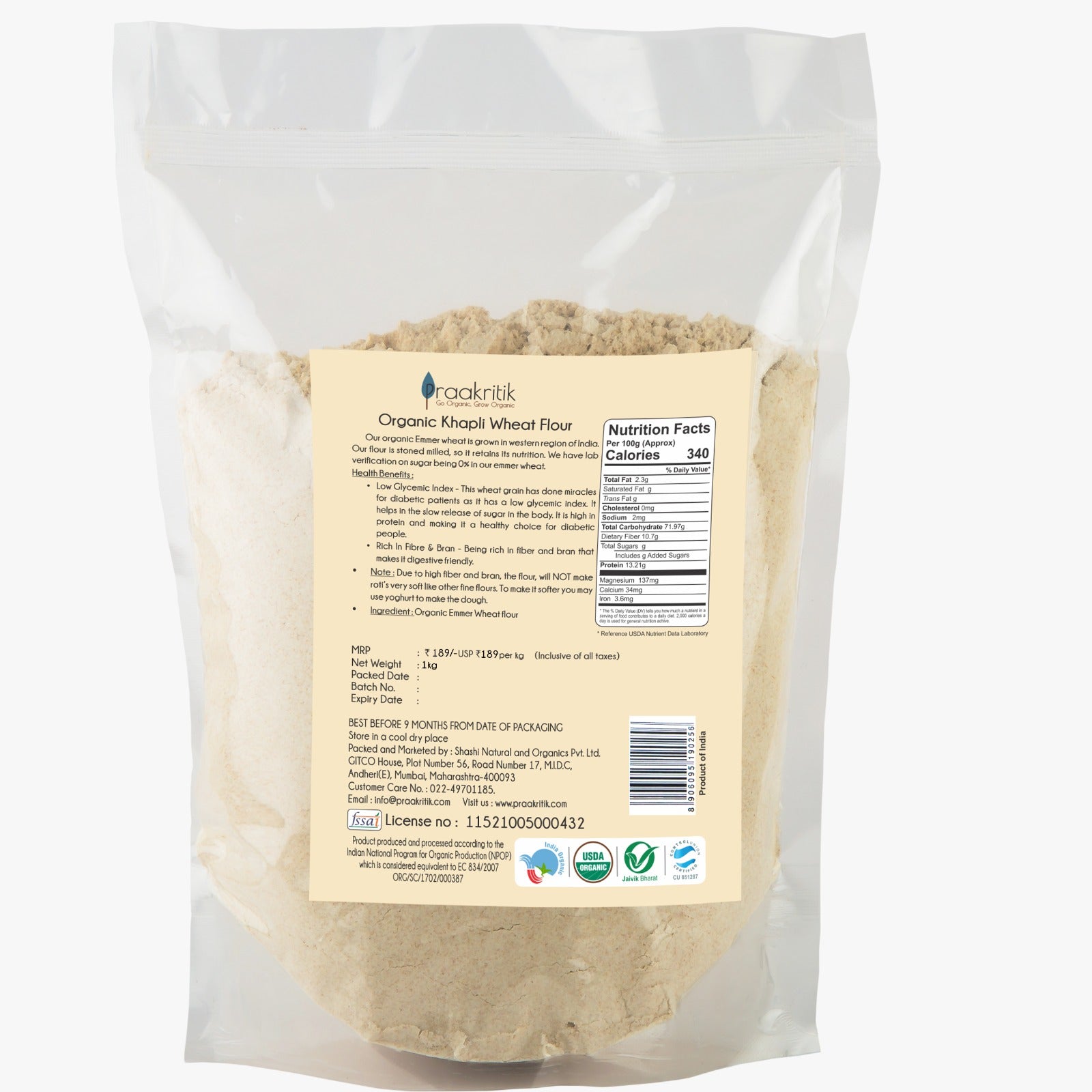 About the Product:- Our Organic Khapli Wheat Atta is made from the Organic Emmer Wheat Grains sourced from certified organic farms of Belgaum in Karnataka. Emmer wheat is an ancient grain full of micronutrients, minerals and vitamins and makes a healthy alternative to Wheat. Emmer wheat flour or Khapli atta is rich in fiber and low on gluten molecules. it makes for a complete protein source and is an excellent addition to a vegetarian diet.